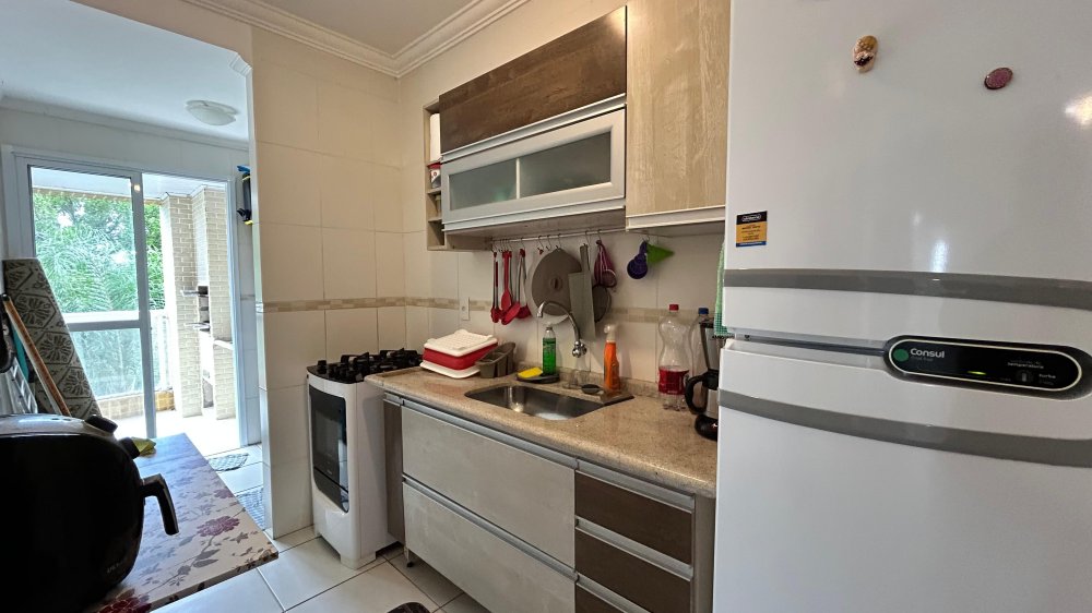 Com 132m² de área total, o imóvel é semimobiliado e oferece uma planta inteligente com 2 dormitórios, sendo 1 suíte, 2 banheiros, 2 salas amplas, sacada com churrasqueira e 2 vagas de garagem. Um espaço generoso para sua família viver com comodidade.
